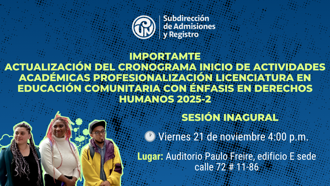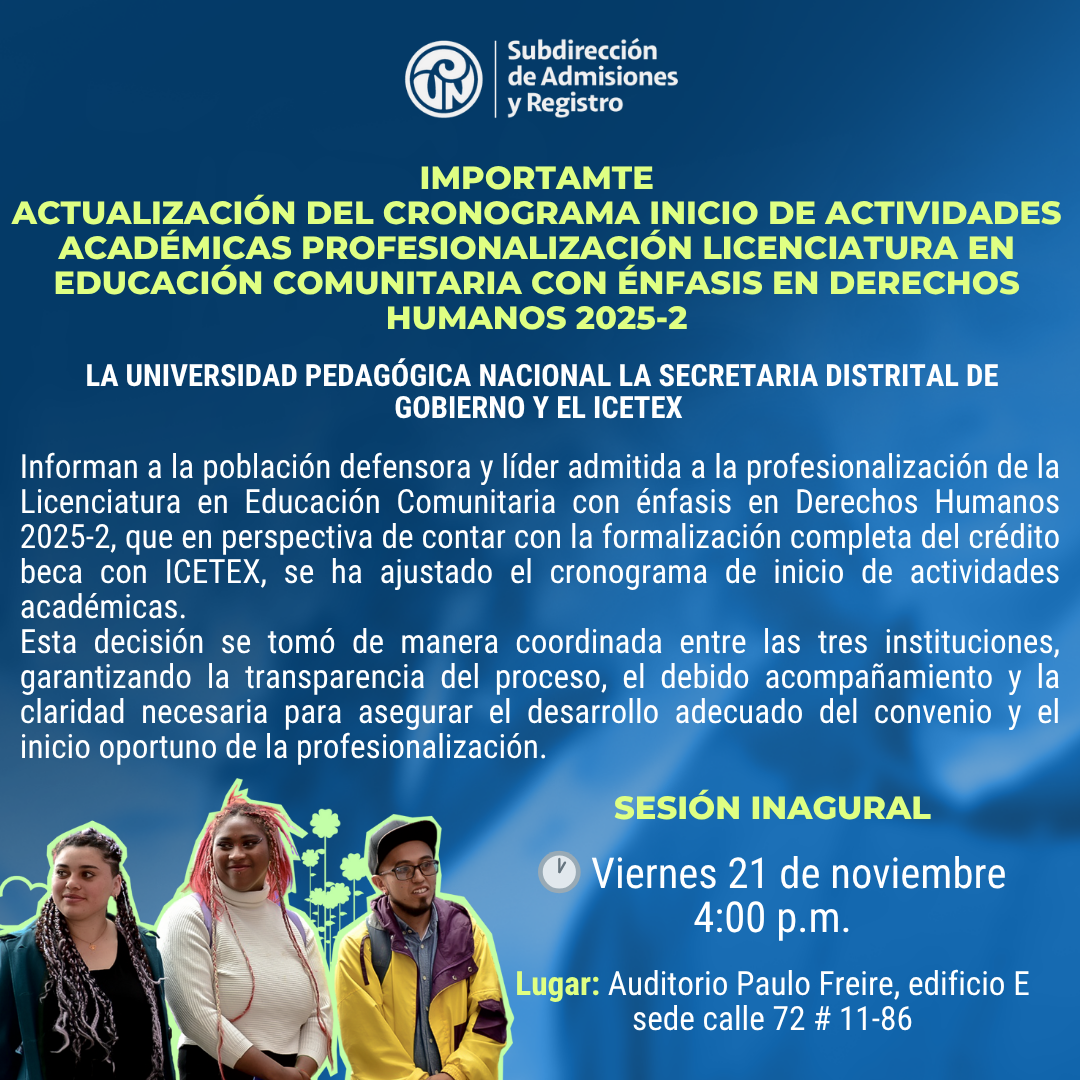 IMPORTAMTE – ACTUALIZACIÓN DEL CRONOGRAMA INICIO DE ACTIVIDADES ACADÉMICAS PROFESIONALIZACIÓN LICENCIATURA EN EDUCACIÓN COMUNITARIA CON ÉNFASIS EN DERECHOS HUMANOS 2025-2