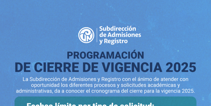 La Subdirección de Admisiones y Registro anuncia la programación de cierre de vigencia 2025