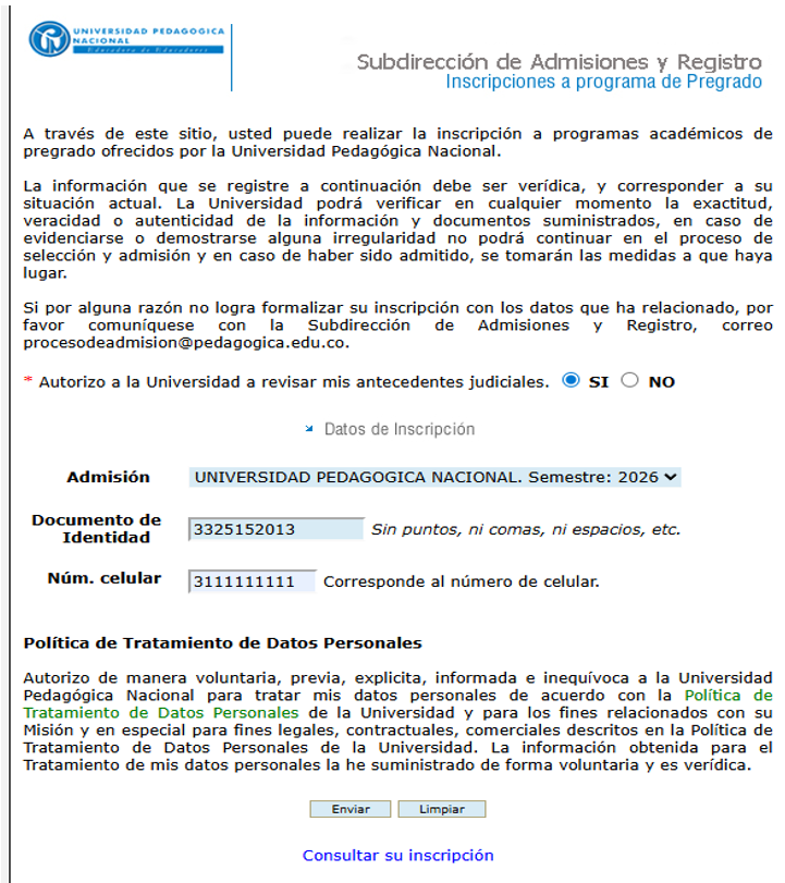 La inscripción a las licenciaturas de la Universidad Pedagógica Nacional es GRATUITA y solo requiere diligenciar el formulario de inscripción