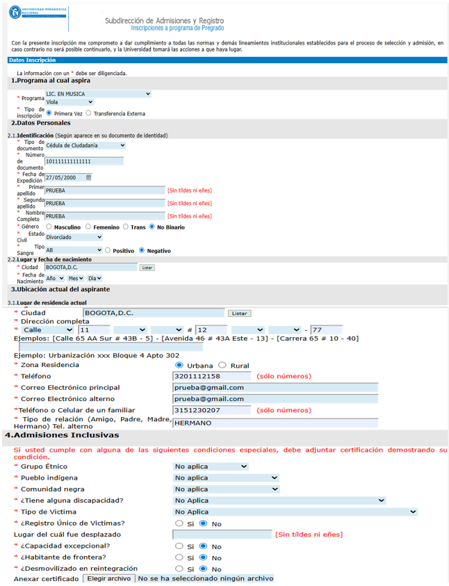 Si presenta inconvenientes durante el proceso de inscripción puede remitir la novedad, duda e inquietud a la Subdirección de Admisiones y Registro a través del correo electrónico procesodeadmision@pedagogica.edu.co, indicando su número de contacto y sus datos personales, o comunicarse directamente al teléfono (57) 601 3485300 ext. 475.