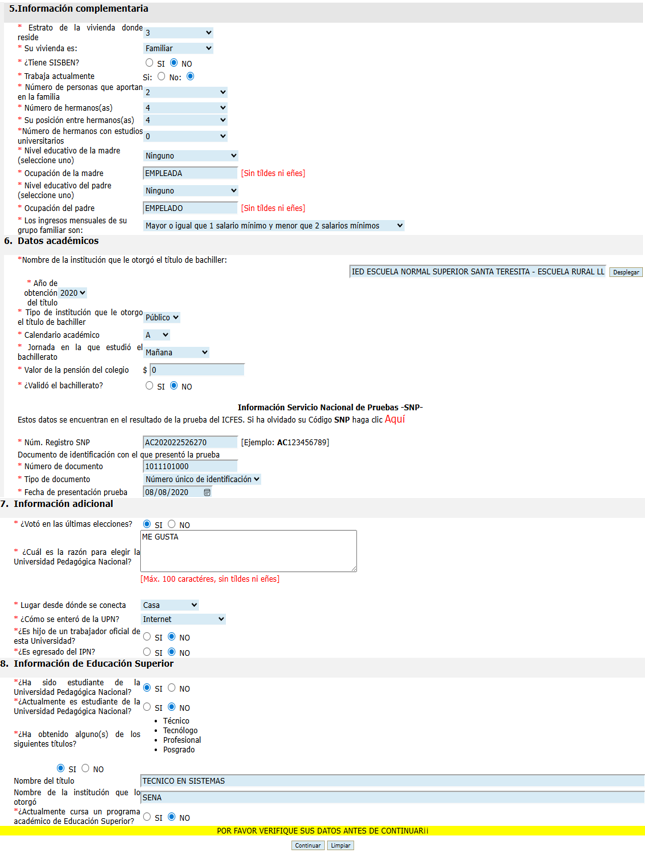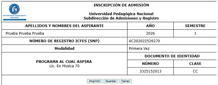 En el punto 6 (Datos académicos) del formulario de formalización de inscripción, el aspirante debe registrar de manera correcta el registro SNP (Servicio Nacional de Pruebas) que es el número o código que el ICFES asigna a cada persona que presenta el examen de estado, ejemplo: AC202425878732. Este número puede ser consultado de varias formas: a través del desprendible de resultados de citación del examen o incluso en la consulta de resultados desde la página web. Importante tener en cuenta el tipo y número de documento con el cual presentó el examen. Estos datos nos permiten realizar la consulta al ICFES para obtener los resultados de nuestros aspirantes para aplicar en la primera fase del proceso de selección, si no se diligencia de manera correcta no se tendrá en cuenta su inscripción dentro del proceso de admisión.